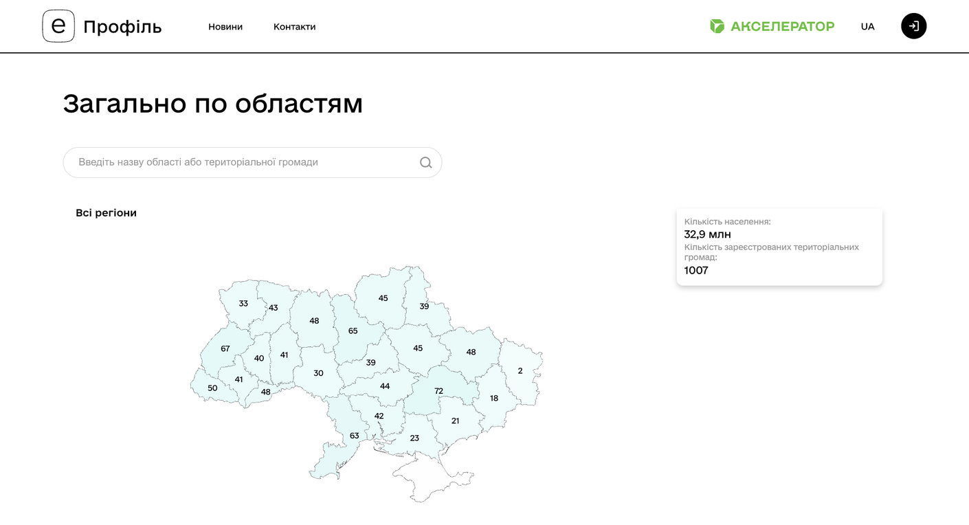 У профілі містяться соціально-економічні, демографічні та інфраструктурні дані. Пошук інтуїтивно зрозумілий та простий. Платформа розроблена таким чином, що дані зручно переглядати та порівнювати.