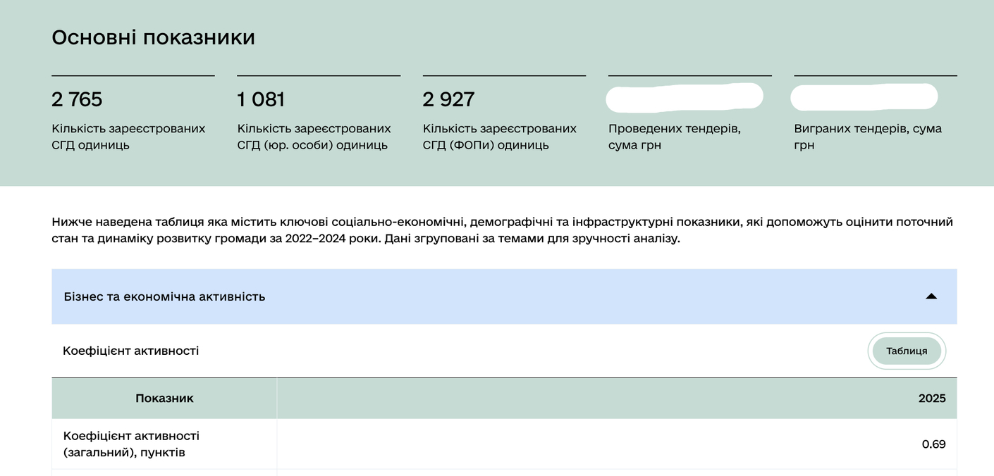 Цифровий профіль дозволяє швидко отримати інформацію з ключовими показниками, що стосуються соціально-економічного життя в громаді.