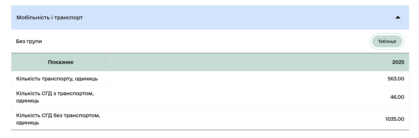 Також у профілі можна переглянути інформацію про транспортну інфраструктуру в громаді. А це своєю чергою стосується планування логістики, доступу до ринків збуту, розширення географії продажів, розробки оптимальних маршрутів та інших деталей.