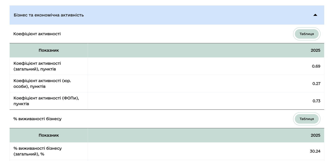 У цифровому профілі громади можна переглянути показники бізнесової активності у річному розрізі.