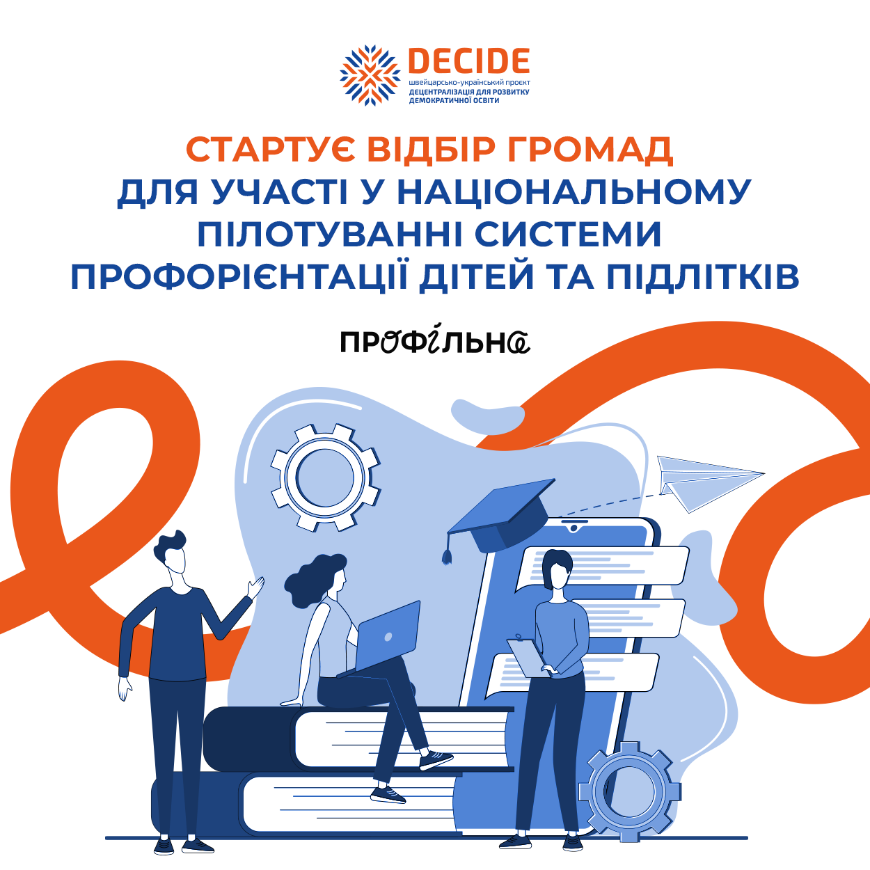 Швейцарсько-український проєкт DECIDE у партнерстві з Міністерством освіти і науки України оголошує конкурсний відбір територіальних громад, які долучаться до створення сучасної системи профорієнтації!