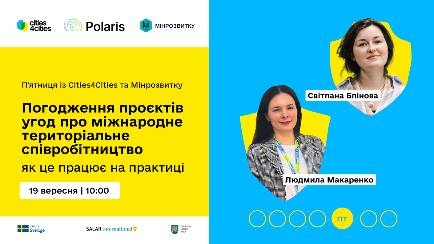 Понад пів року діє чітка процедура для підписання міжнародного партнерства. Запрошуємо розібратися разом, як правильно підготувати проєкт угоди, погодити її, й що важливо – врахувати на практиці. Поговоримо про все це 19 вересня під час П’ятниці із Cities4Cities та Мінрозвитку.