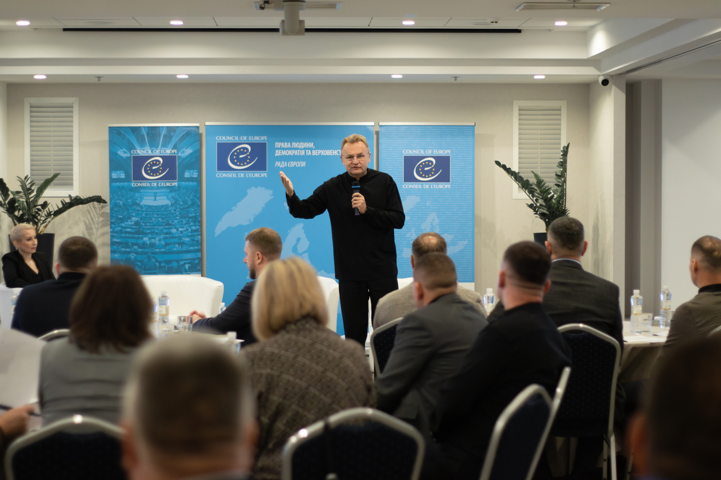 З вітальними словами виступили заступник Міністра розвитку громад та територій України Олексій Рябикін, Львівський міський голова Андрій Садовий та Директорка Конгресу місцевих і регіональних влад Ради Європи Клаудія Лучіані, яка долучилась онлайн.