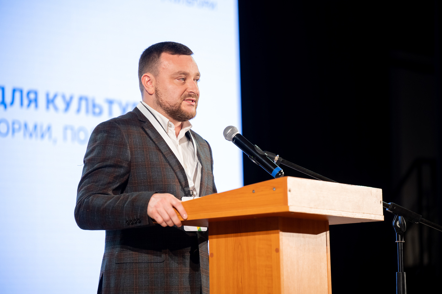 Іван Вербицький, заступник Міністра культури України у своєму вітальному слові говорив про важливість спільних зусиль усієї культурної спільноти для успішної реалізації Національної стратегії розвитку культури, зокрема про роботу громад і ОВА, які реалізують стратегію на місцях.