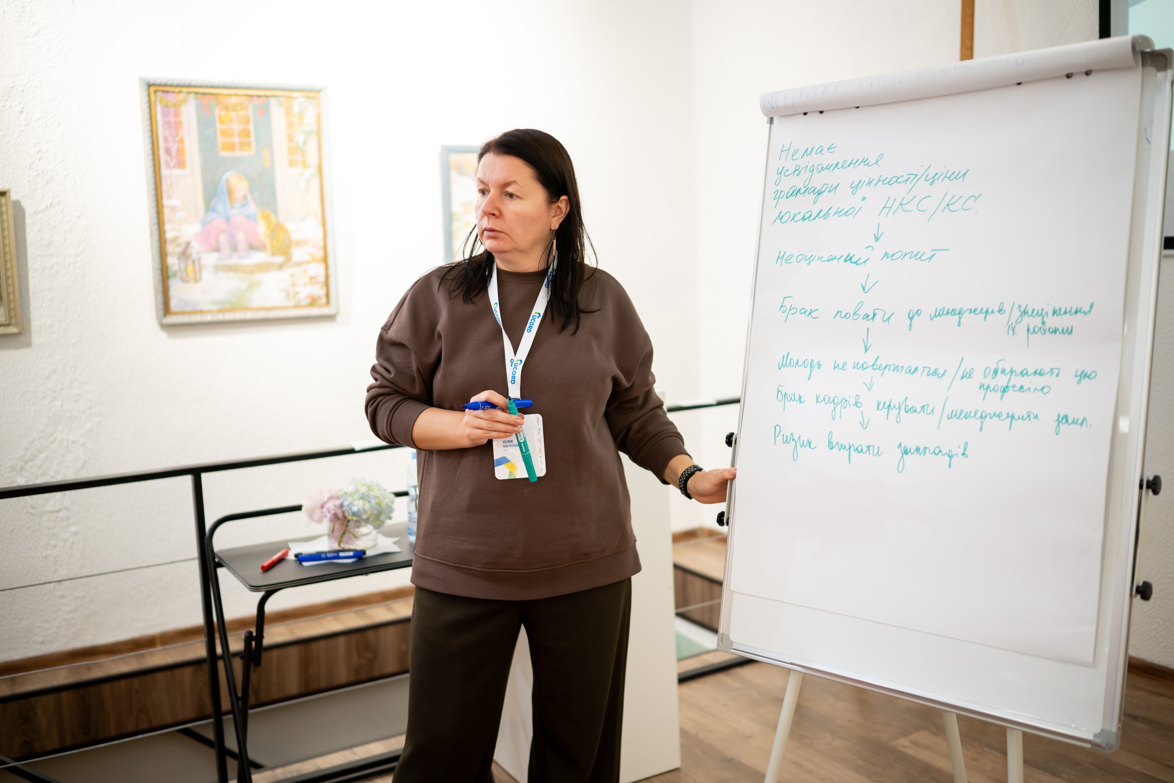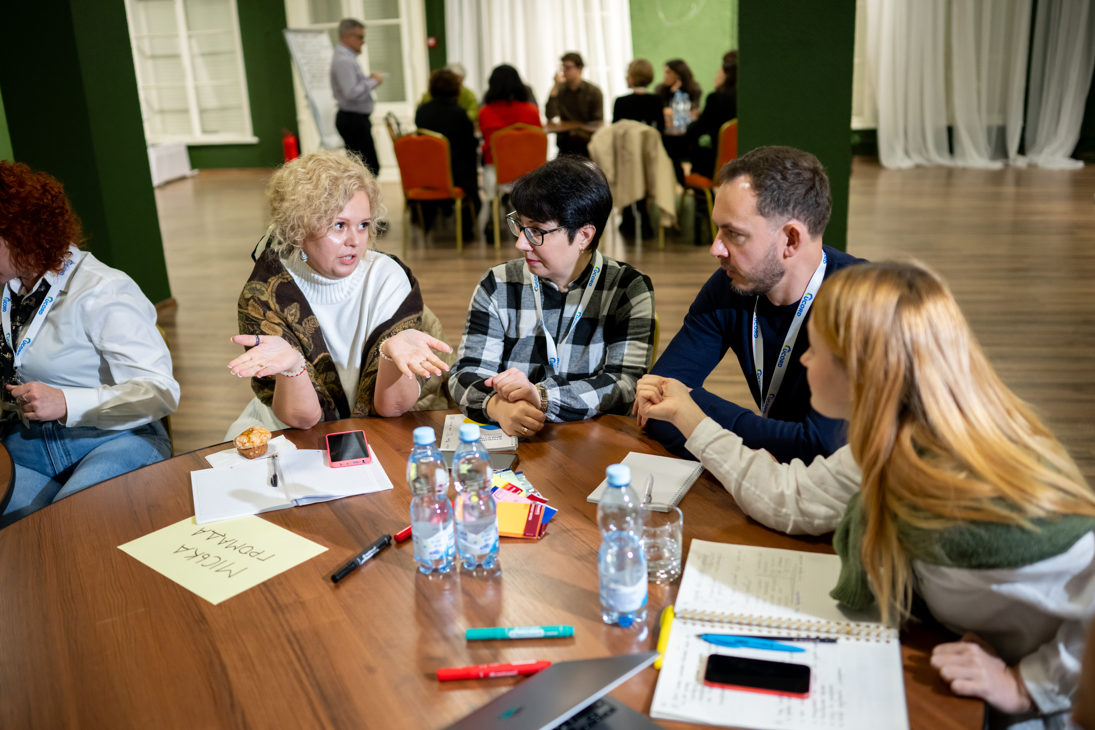 Крім того, протягом дня учасники працювали в групах з модераторами і фасилітаторами, обговорюючи Стратегію та цілісну реформу мережі закладів культури, аналізували переваги, недоліки, виклики, можливості та формували очікування від упровадження змін. Робота в групах передбачала відкритий і вільний діалог, де кожен учасник зміг поділитися власним досвідом, висловити сподівання й застереження, а також спільно з колегами визначити практичні кроки для успішного впровадження реформи та реалізації стратегії розкитку культури.