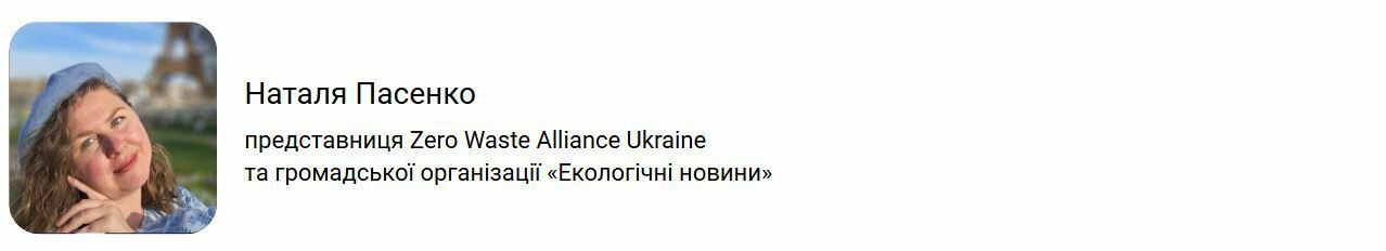 Наталя Пасенко: «Розуміючи ці проблеми, наша ГО планує готувати менторів для громад. Попередньо, навчання буде для місцевих громадських активістів, працівників органів самоврядування, комунальників і всіх, хто цікавиться напрямом zero waste та хоче впроваджувати в себе економічно доцільні та безпечні практики управління відходами. Важливо, щоб ці люди стали рушіями прогресу в цьому питанні: організовували наради, координували роботу відділів у місцевій раді, збирали дані про відходи та спілкувалися з мешканцями».