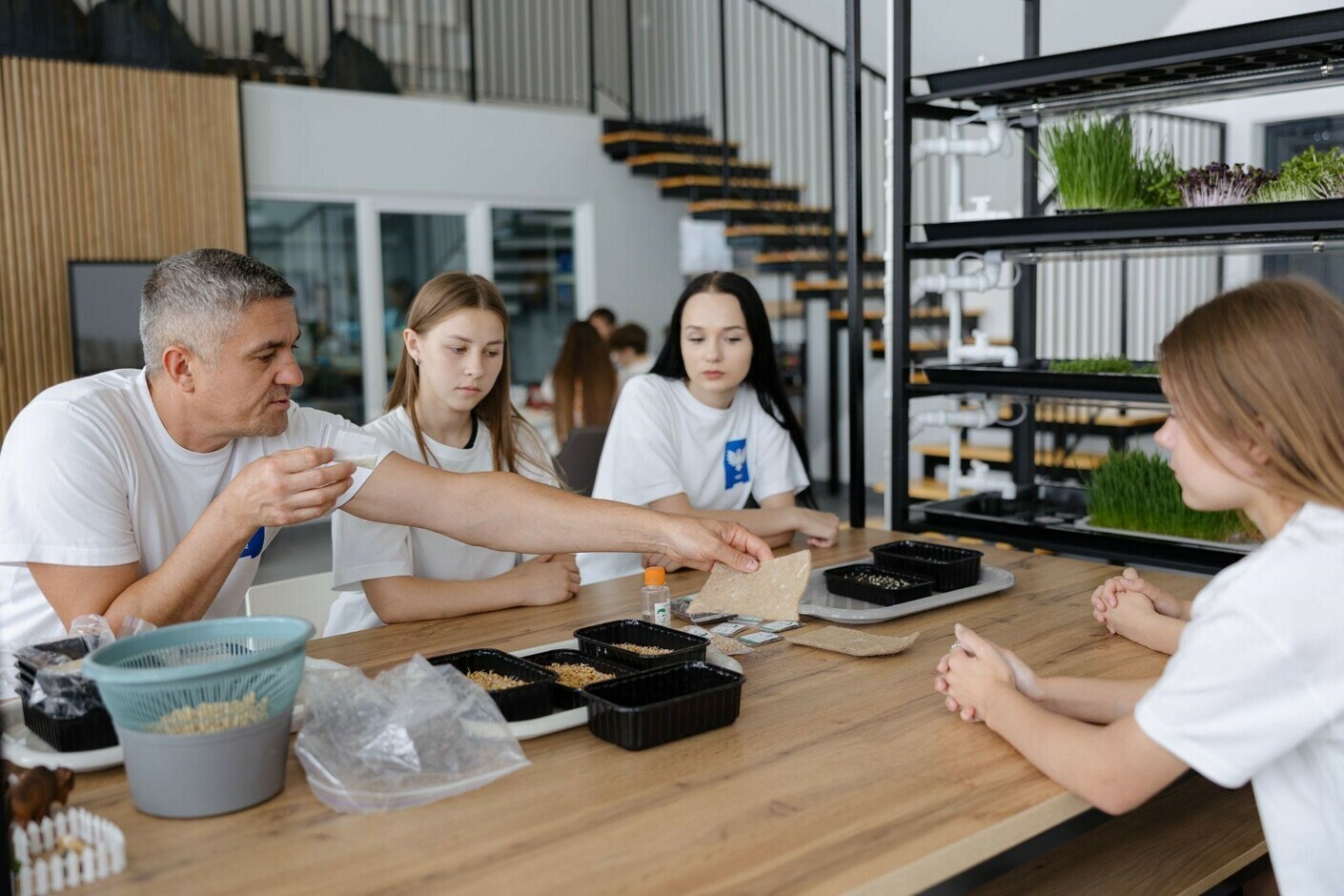 «У лотках ростуть різні культури: горох, крес-салат, соняшник. Ми показуємо дітям, як насіння проростає в темряві, а як – на світлі. І що навіть у домашніх умовах можна вирощувати здорову їжу й за бажання започатковувати свій невеликий бізнес», – каже Максим Поджарий.