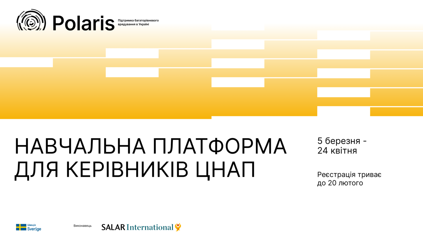 Програма Polaris «Підтримка багаторівневого врядування в Україні» запрошує на навчання керівниць та керівників ЦНАП, які прагнуть розвивати свої професійні компетенції.