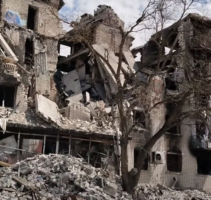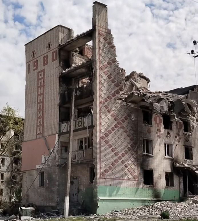 Зруйнований багатоквартирний будинок на вул. Олімпійська в Олешках. Колись у ньому був магазин Greenmarket