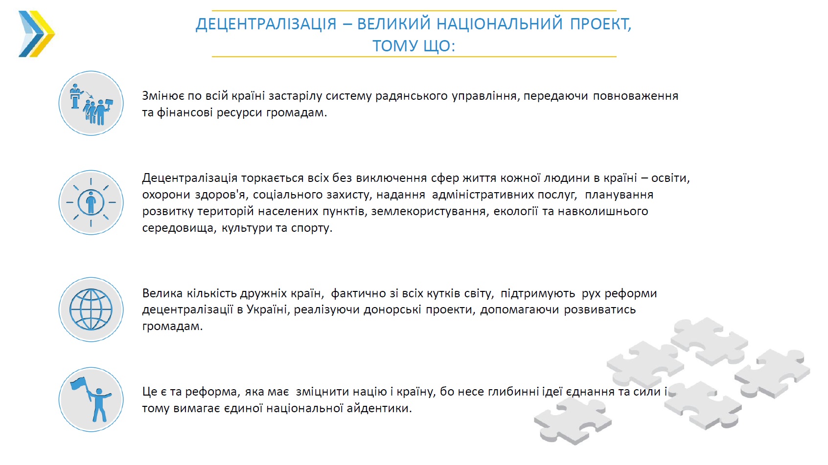 «Децентралізація – головний національний проект розвитку України. Вона впливає на усі сфери життя людини – освіту, охорону здоров’я, соціальний захист, надання адміністративних послуг, планування розвитку територій, екологію, культуру і спорт. Це те, що сьогодні є обличчям влади. Децентралізації вимагає злагоджених дій громад, державних органів, міжнародних донорів. З цією метою Міністерство регіонального розвитку, будівництва та ЖКГ ініціювало підписання згаданого Меморандуму, який підписали 10 міністерств. Це подія, яку ми чекали два роки тому, що координація зусиль всіх міністерств важлива і дає синергію, яка має відобразитися на якості життя кожної української родини», — наголосив під час підписання Віце-прем’єр-міністр – Міністр регіонального розвитку, будівництва та ЖКГ Геннадій Зубко.