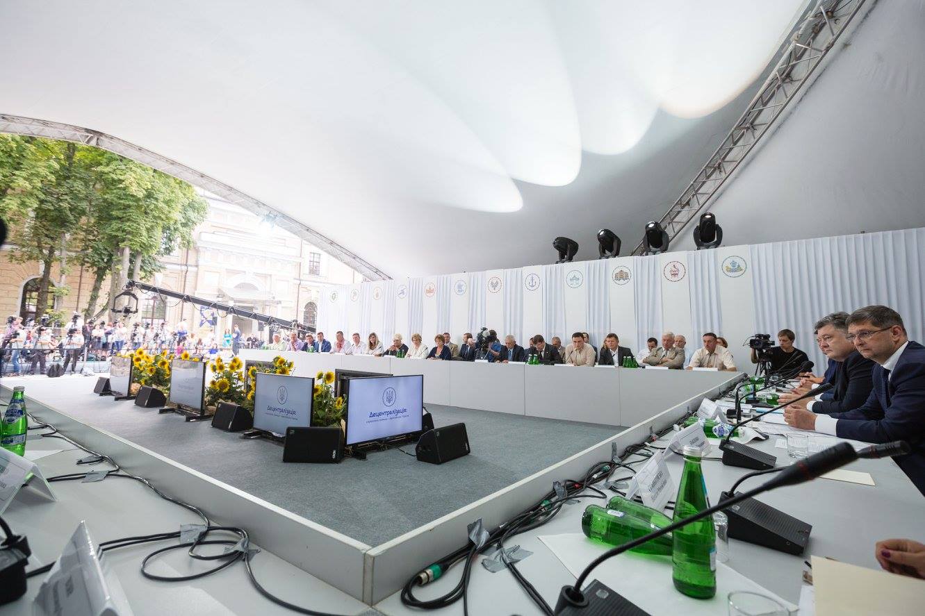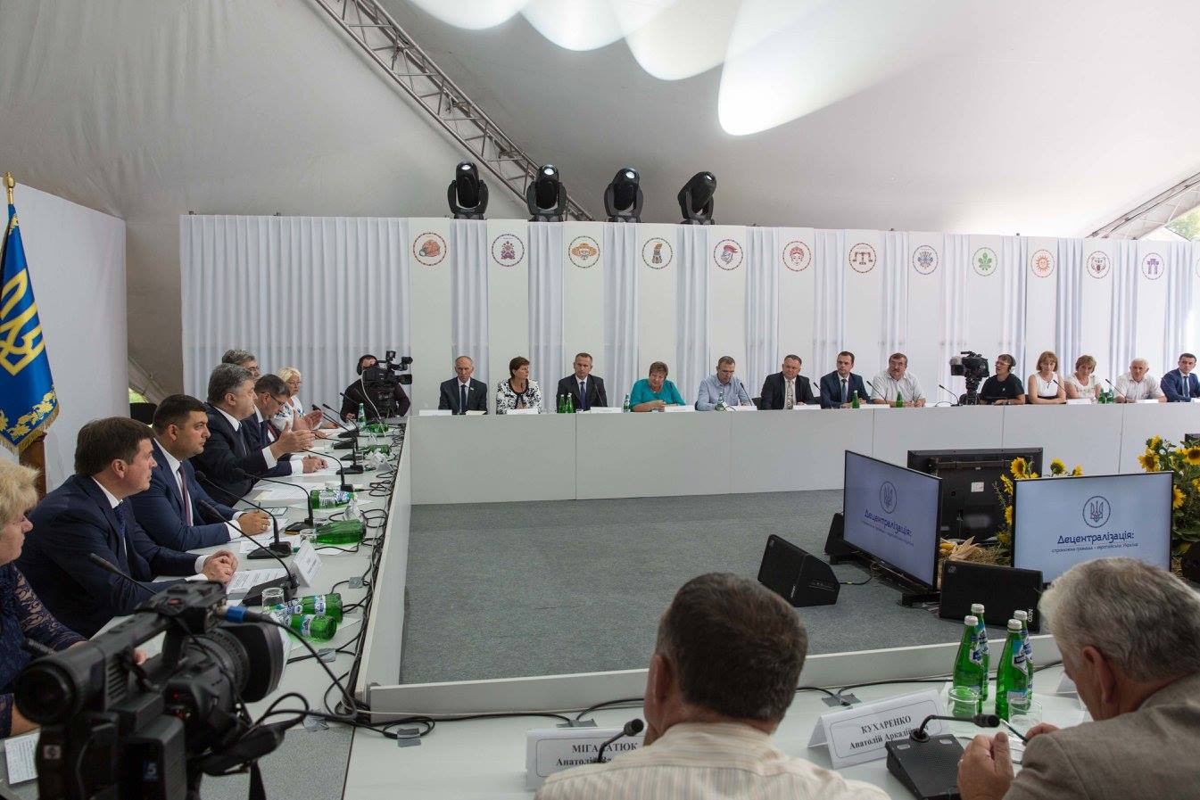 Президент зазначив, що метою сьогоднішньої зустрічі є обмін думками та аргументами: «Щоб ми знайшли спільну точку зору і створили тверду аргументацію для народних депутатів, і 31 серпня, в понеділок, на позачерговій сесії ВР дати «зелене світло», нарешті за 24 роки, реформі з передачі влади територіальним громадам і Українському народу».