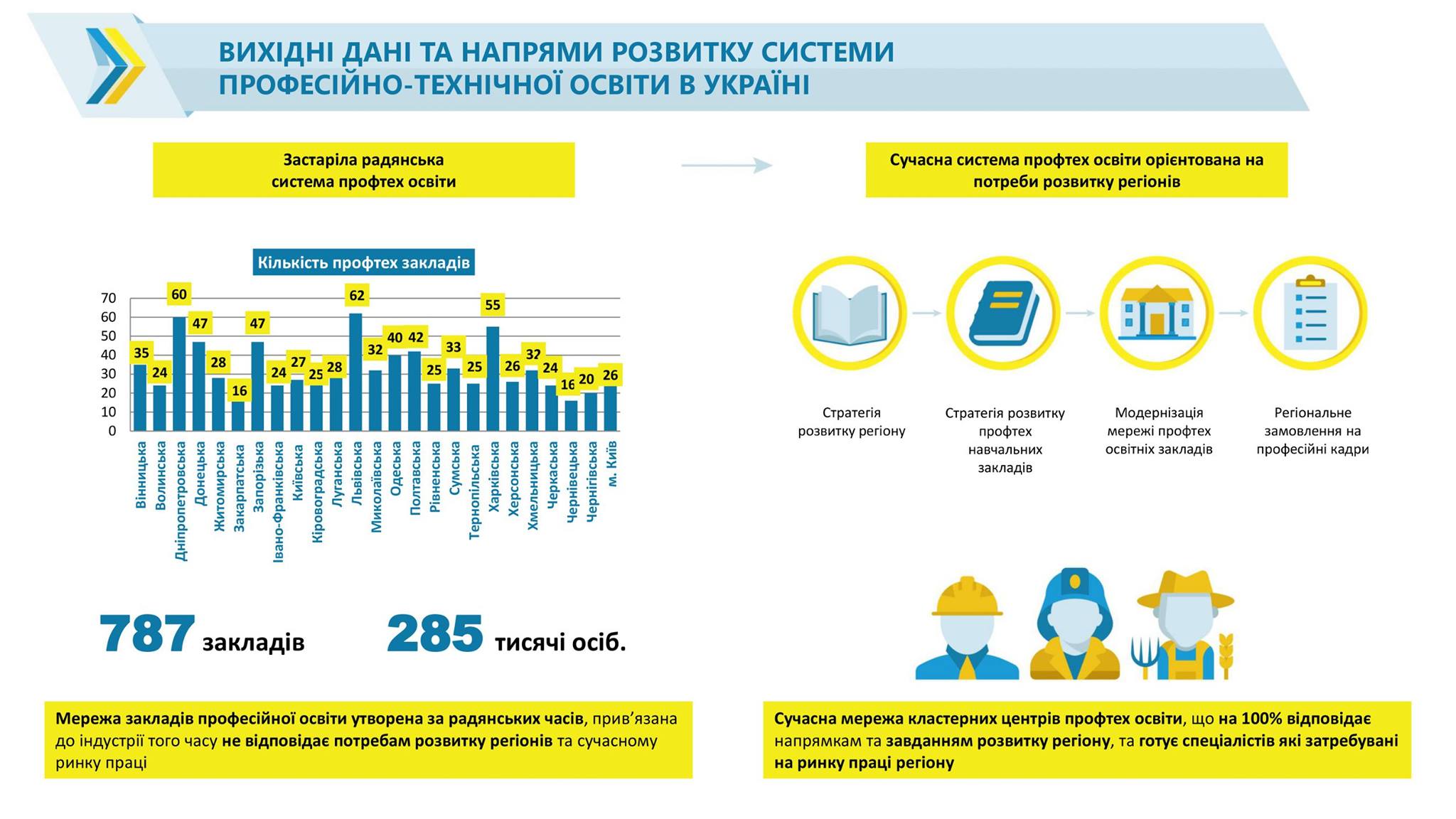 Він нагадав, що в Україні підготовка кваліфікованих робітників для всіх галузей економіки здійснюється у 787 державних професійно-технічних навчальних закладах, в яких навчаються майже 285 тисячі осіб, натомість здобувачами вищої освіти є 1 млн 200 осіб.