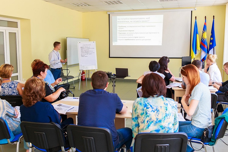 В приміщення Вінницького ВП ЦРМС відбувся одноденний тренінг, присвячений практичним аспектам написання проектів. Його учасники потренувались у формулюванні проектних ідей, які відповідають критеріям SMART, опрацювали готові до втілення в життя три проектні ідеї — від сортування сміття до заміни ліхтарів на енергоощадливі. Увесь теоретичний матеріал підкріплено практичними вправами і роботою в групах по 5-6 чоловік.
