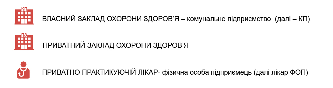 Отримувачами коштів в рамках цієї державної програми будуть безпосередньо надавачі медичних послуг – заклади охорони здоров’я будь-якої форми власності та приватно практикуючі лікарі. Тобто, в новій системі не тільки заклади охорони здоров’я комунальної форми власності будуть надавати первинну медичну допомогу за бюджетні кошти. Для отримання статусу надавача медичних послуг за бюджетні кошти достатньо укласти відповідний договір з головним розпорядником коштів. Закон забороняє МОЗ відмовляти або ухилятися від укладення таких договорів, хоча, якщо надавач первинної медичної допомоги буде порушувати умови договору, такий договір може буті розірваний або припинений.