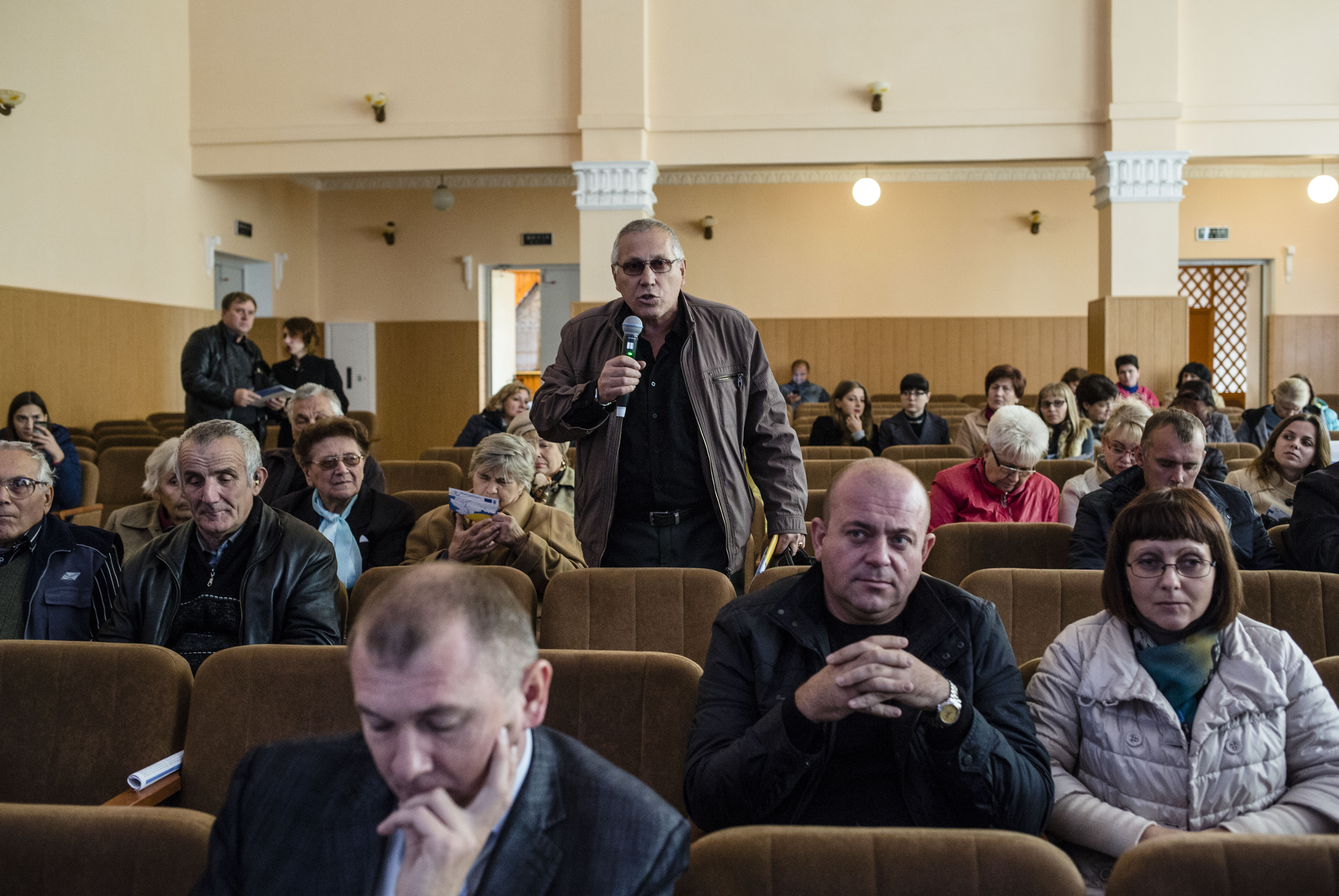Сартана, Україна – Близько 100 людей, чоловіків і жінок, різного віку і різних професій, зібралися 13 жовтня у мерії селища Сартана обговорити, як зробити цю постраждалу від конфлікту місцевість розвинутою та заможною.