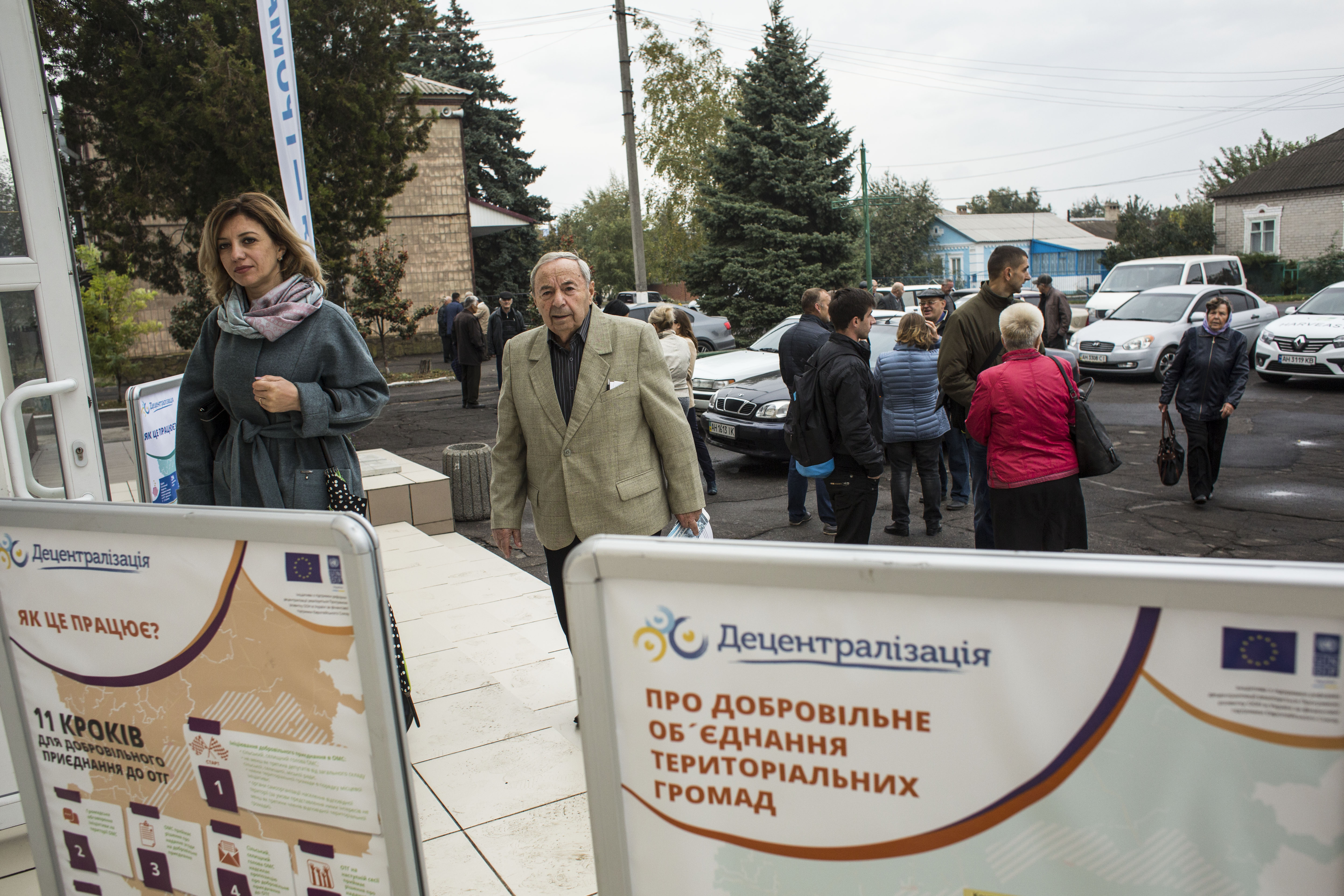 Експерти, залучені до інформаційної кампанії ПРООН “Я – ГРОМАДА!”, яка здійснюється за підтримки Європейського Союзу, навідалися до Сартани у рамках виїзної презентації та пояснювали місцевим мешканцям, чому децентралізація принципово важлива для розвитку Східної України.