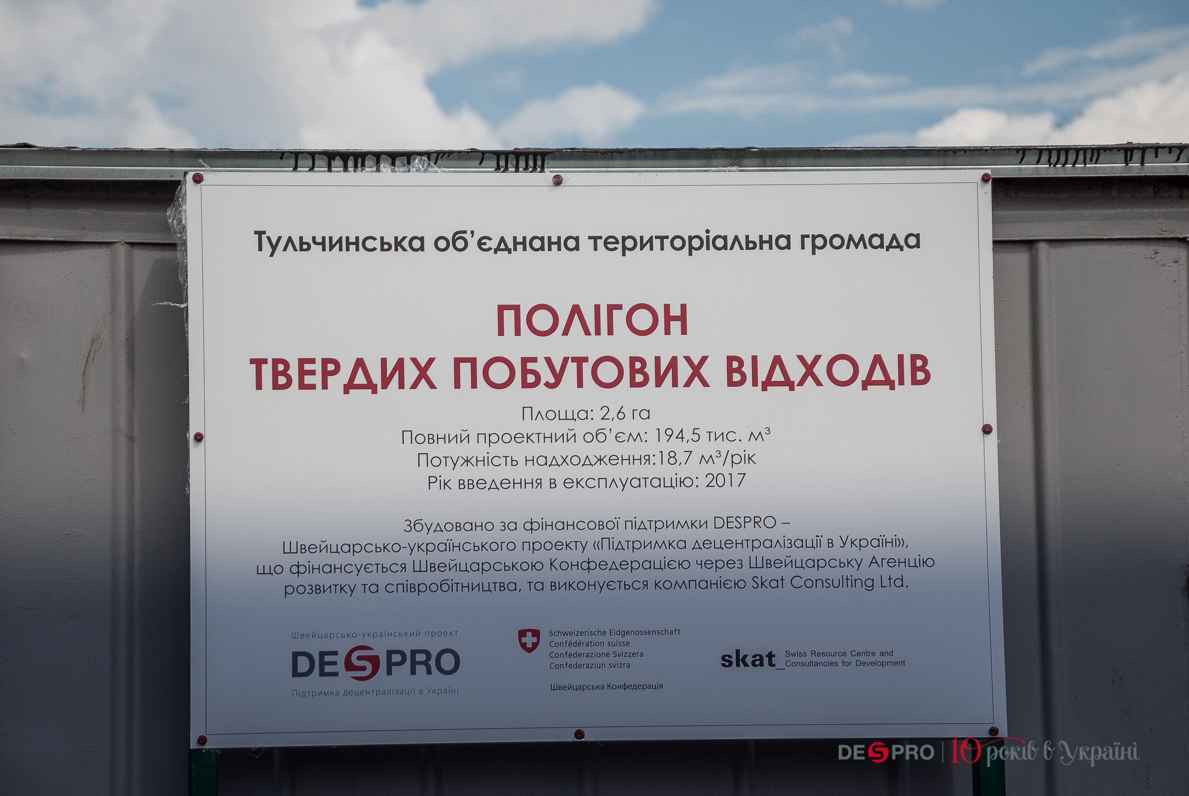 -Для нас як для проекту було важливо, аби захоронення відходів відбувалося належним чином і законно. Насамперед за співфінансування DESPRO було побудовано новий сміттєвий полігон площею 2 га, який відповідає усім українським стандартам. Полігон – можливо, і не складний технологічний об’єкт, але трудомісткий. Уявіть собі колован такої площі глибиною в 4,5 м. Згодом дно та стінки котловану було вистелено спеціальною пластиковою плівкою – протифільтраційним екраном, який захищає ґрунтові води від потрапляння у них небезпечних речовин зі сміттєзвалища. Також на Тульчинському полігоні ми облаштували систему збирання та відведення фільтрату – рідини, яка збирається з часом від сміттєвої маси та атмосферних опадів. Плануємо також зробити ваговий комплекс, щоб машини, які приїжджають на полігон, могли б зважуватися до і після розвантаження. Завдяки цьому комплексу можна точно визначити обсяг сміття на полігоні. На 99% українських сміттєзвалищ цей обсяг визначають на око, множачи кубічні метри, які привозить сміттєвоз, на середню щільність сміття. Відтак мало хто знає, скільки відходів збирається, скільки захоронюється, і як наслідок – ніхто не знає, скільки витрачається на поводження зі сміттям.