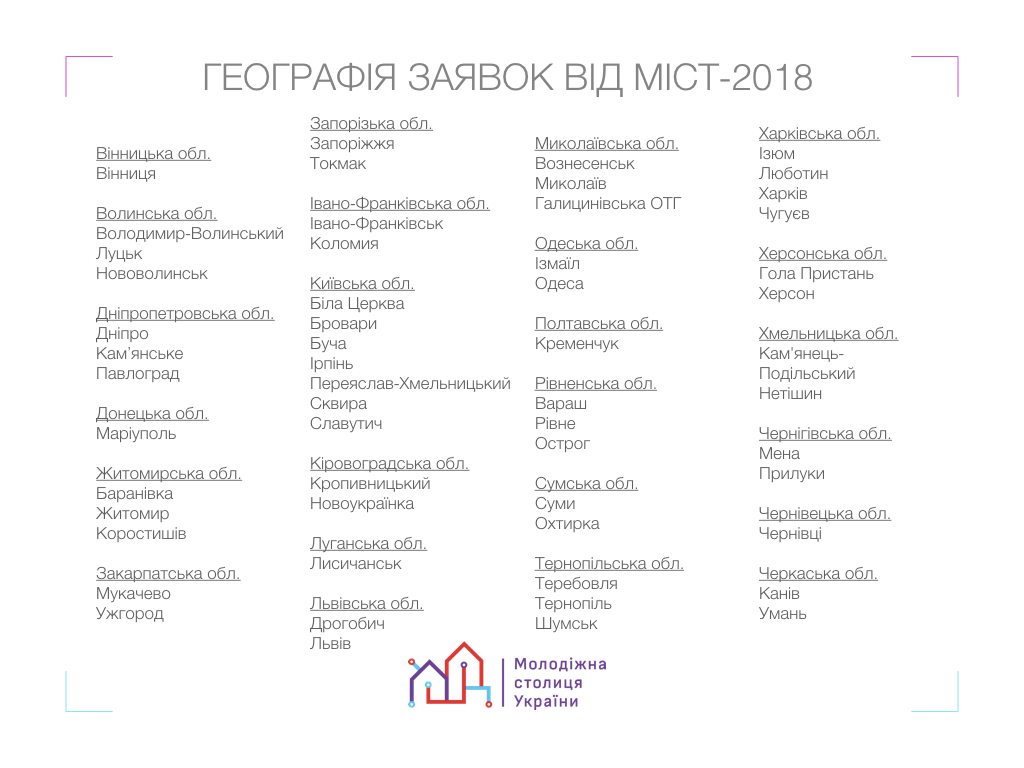 Повний перелік міст, що брали участь у конкурсі в 2018 році: