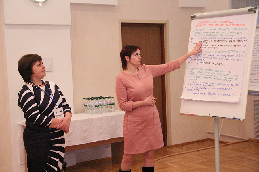 Для забезпечення орієнтації службової діяльності на досягнення чітких, вимірюваних результатів, учасники заходу здобули навички щодо розробки завдань службової діяльності та показників для оцінювання рівня їх виконання. Вони також протестували інструментарій для оцінювання результатів службової діяльності та вивчення індивідуальних навчальних потреб службовців місцевого самоврядування.