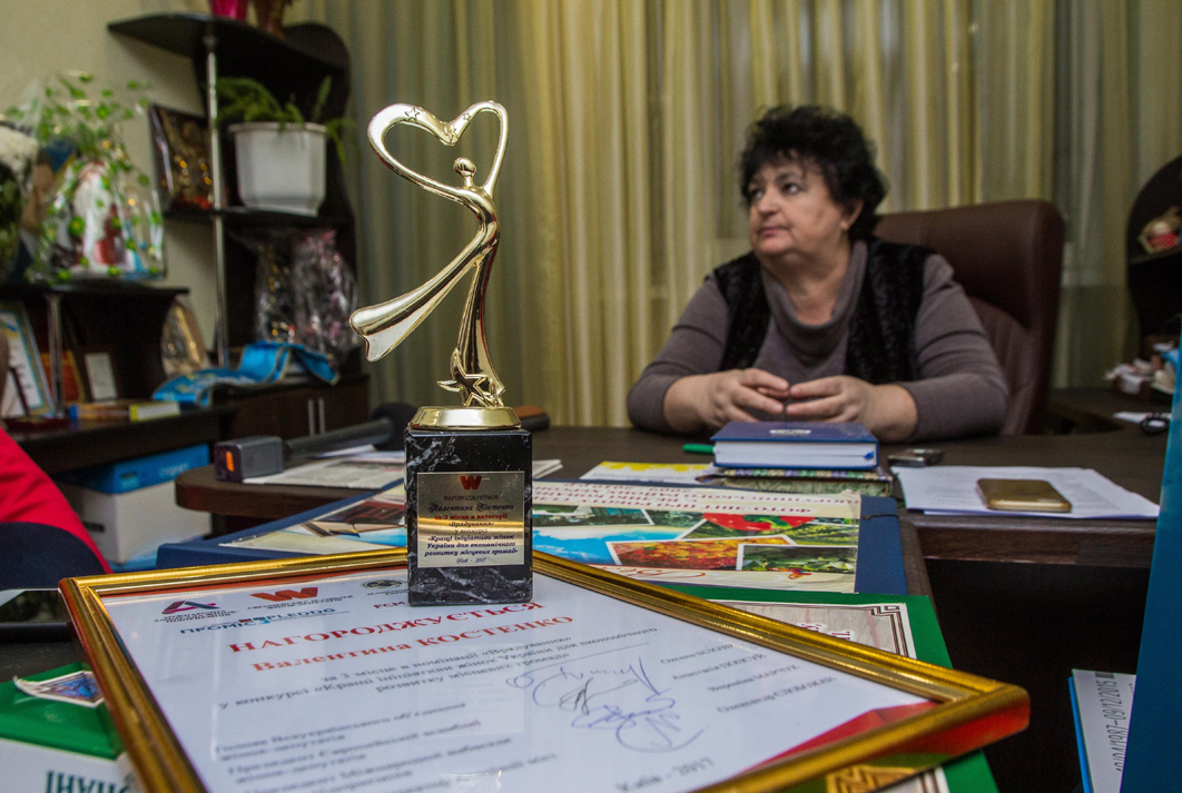 Громада відповідає щирою вдячністю за таку турботу голови. На полиці ми помітили обережно складену стрічку із написом «Найкращий у світі сільський голова». Соромлячись, Валентина Дмитрівна таки розповіла нам, що стрічку їй подарували жителі на свято села.