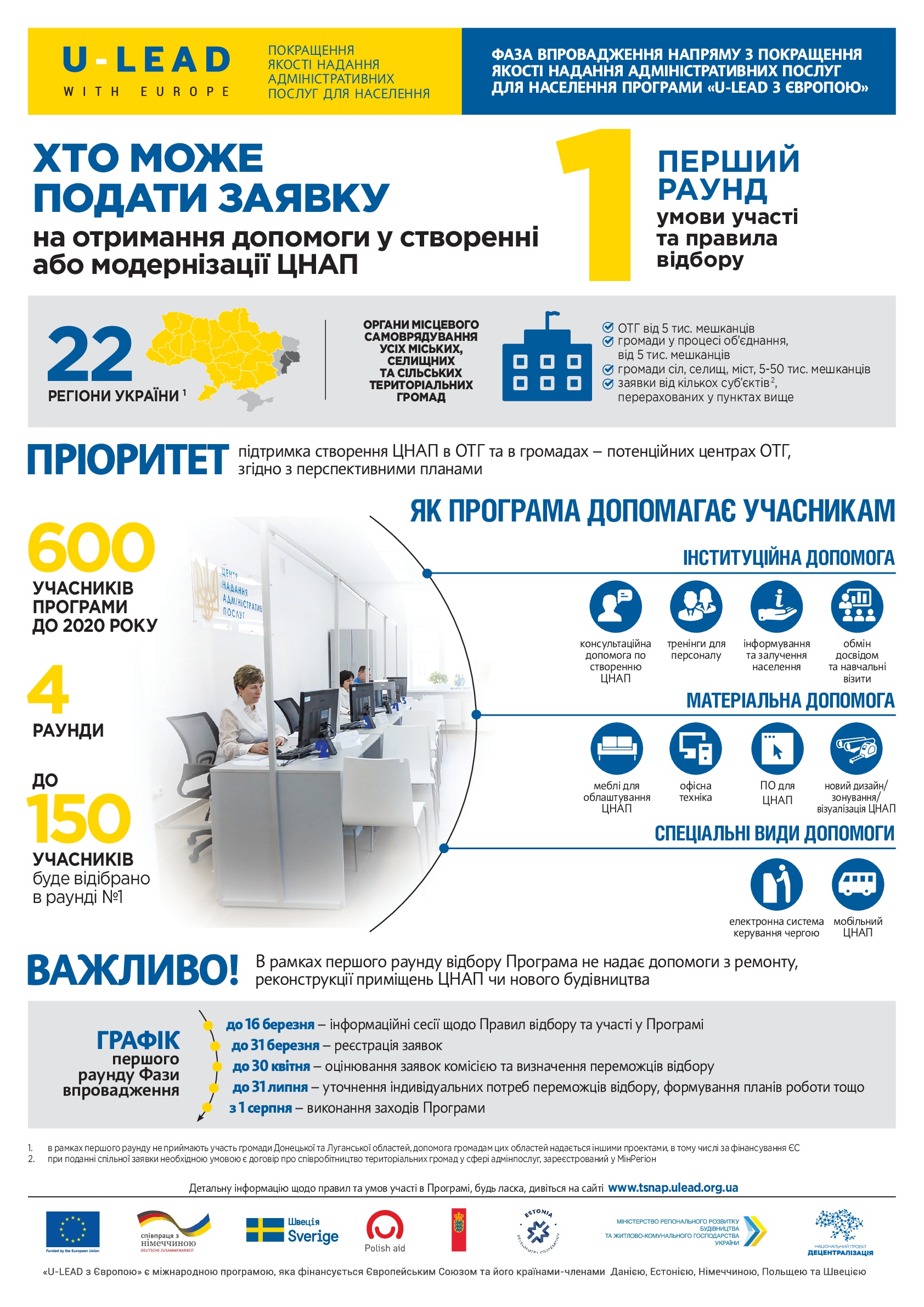 Загалом до 2020 року у рамках програми буде створено та модернізовано до 600 ЦНАП.
