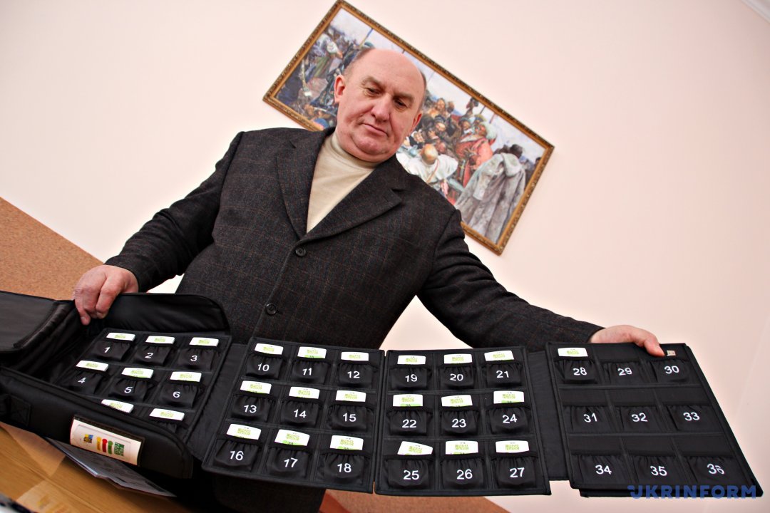 Секретар Почаївської міської ради Василь Уйван демонструє мобільну систему для голосування «Рада»