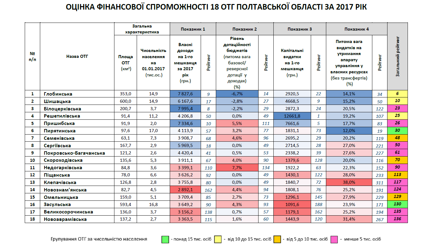 Деталі оцінки фінансової спроможності 18 ОТГ Полтавської області ТУТ