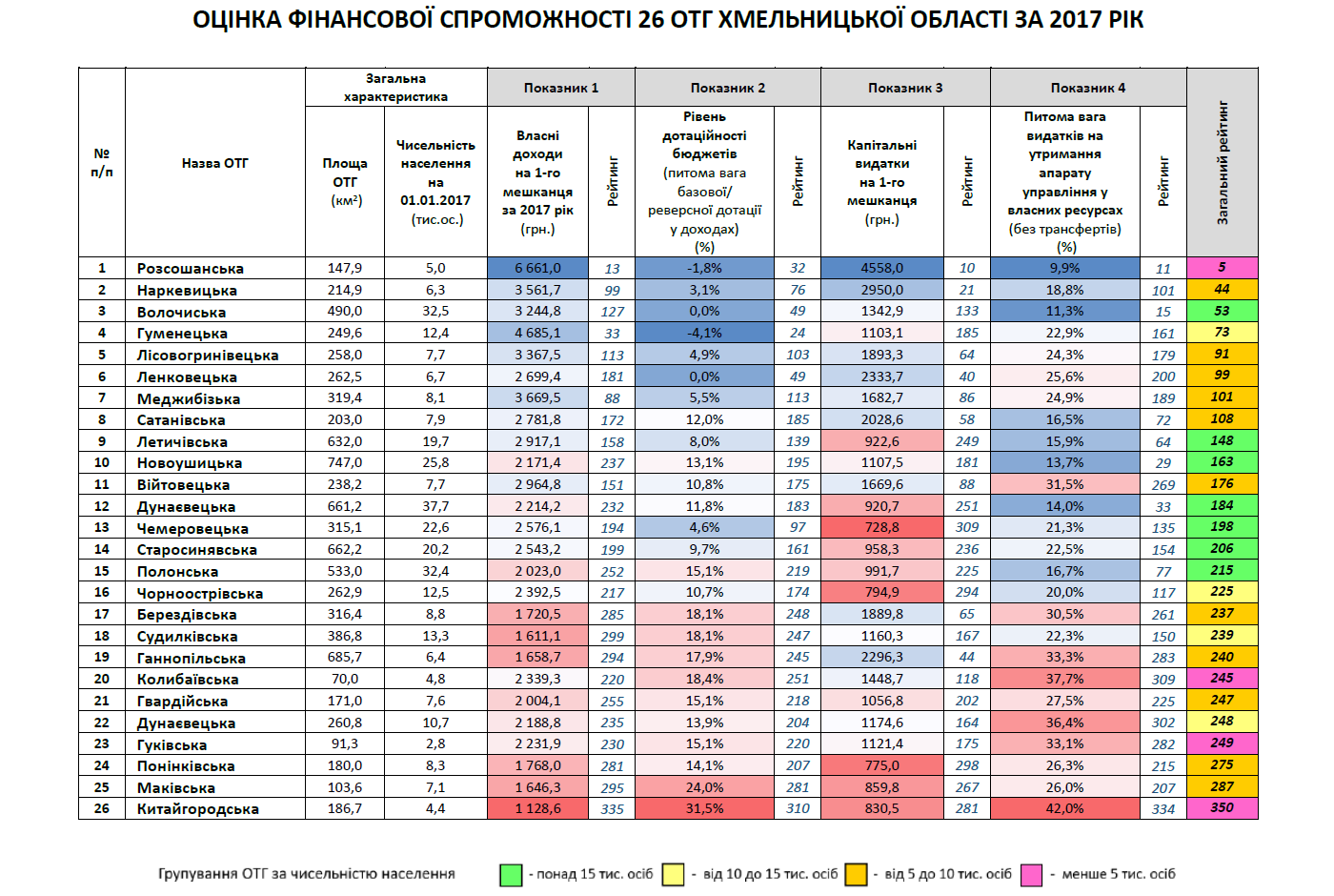 Деталі  оцінки фінансової спроможності 26 ОТГ Хмельницької області ТУТ