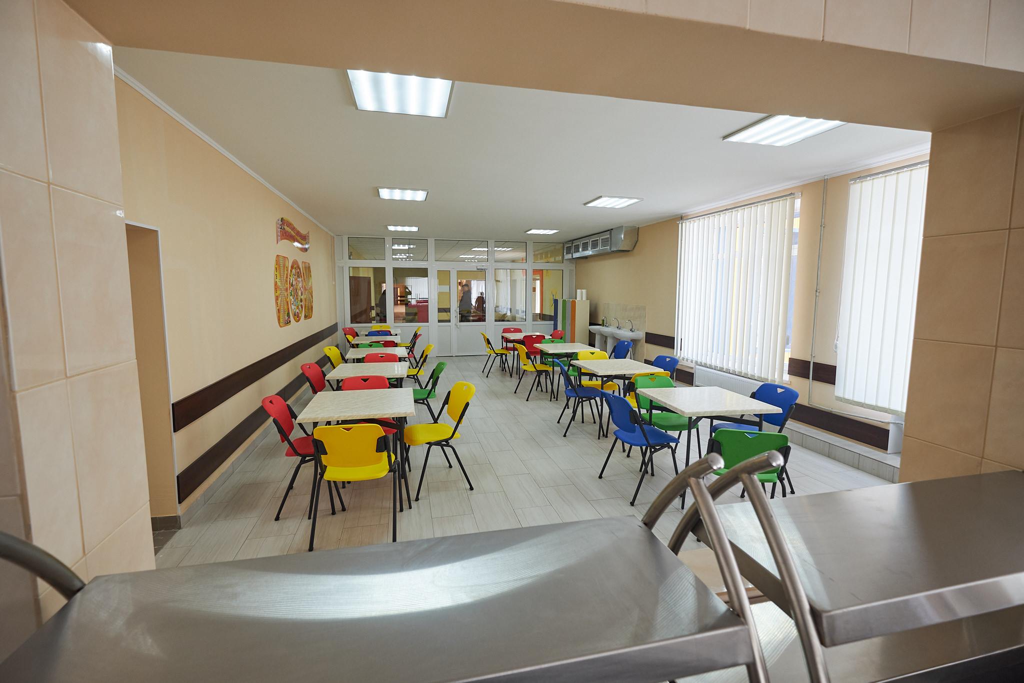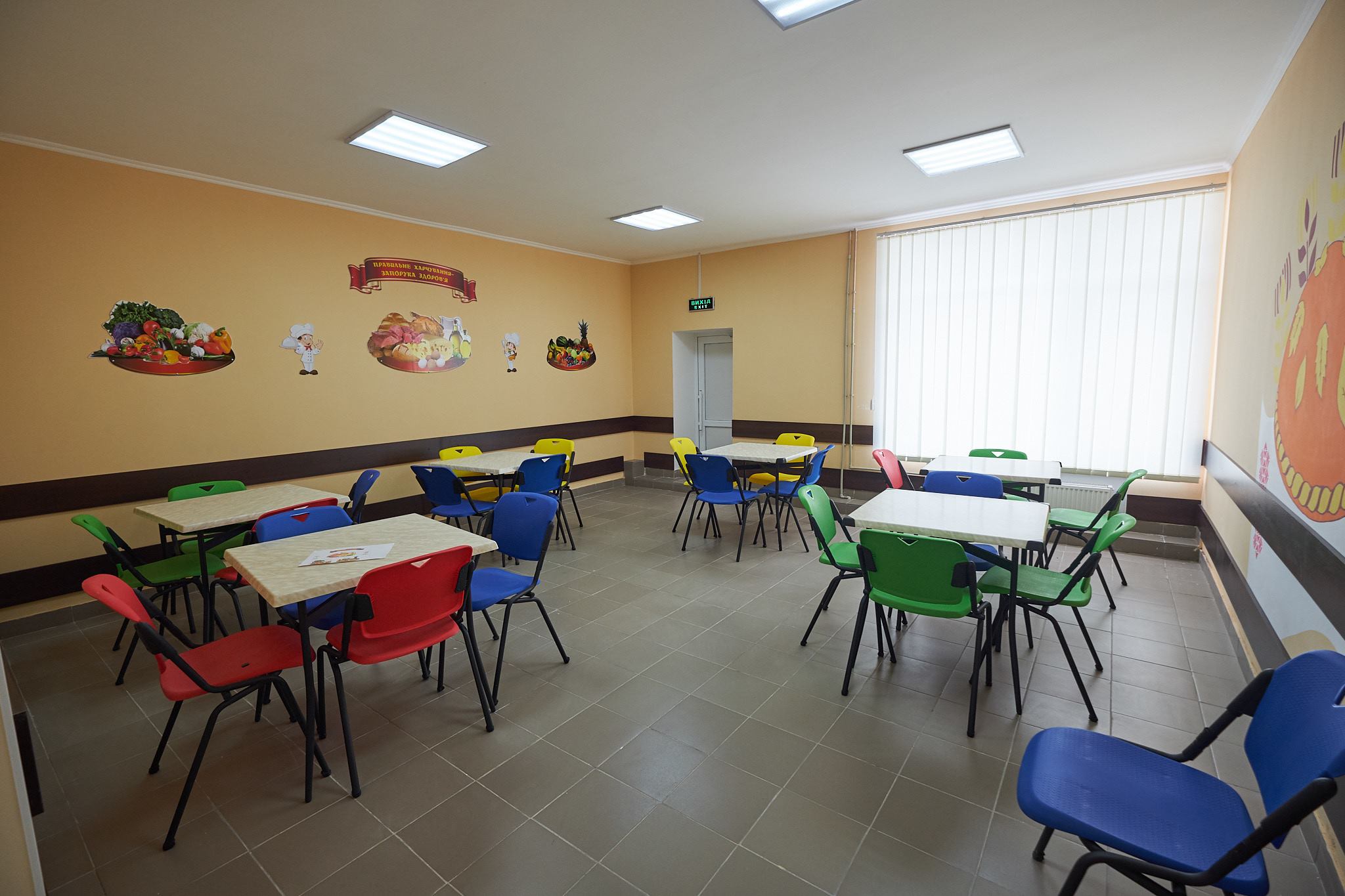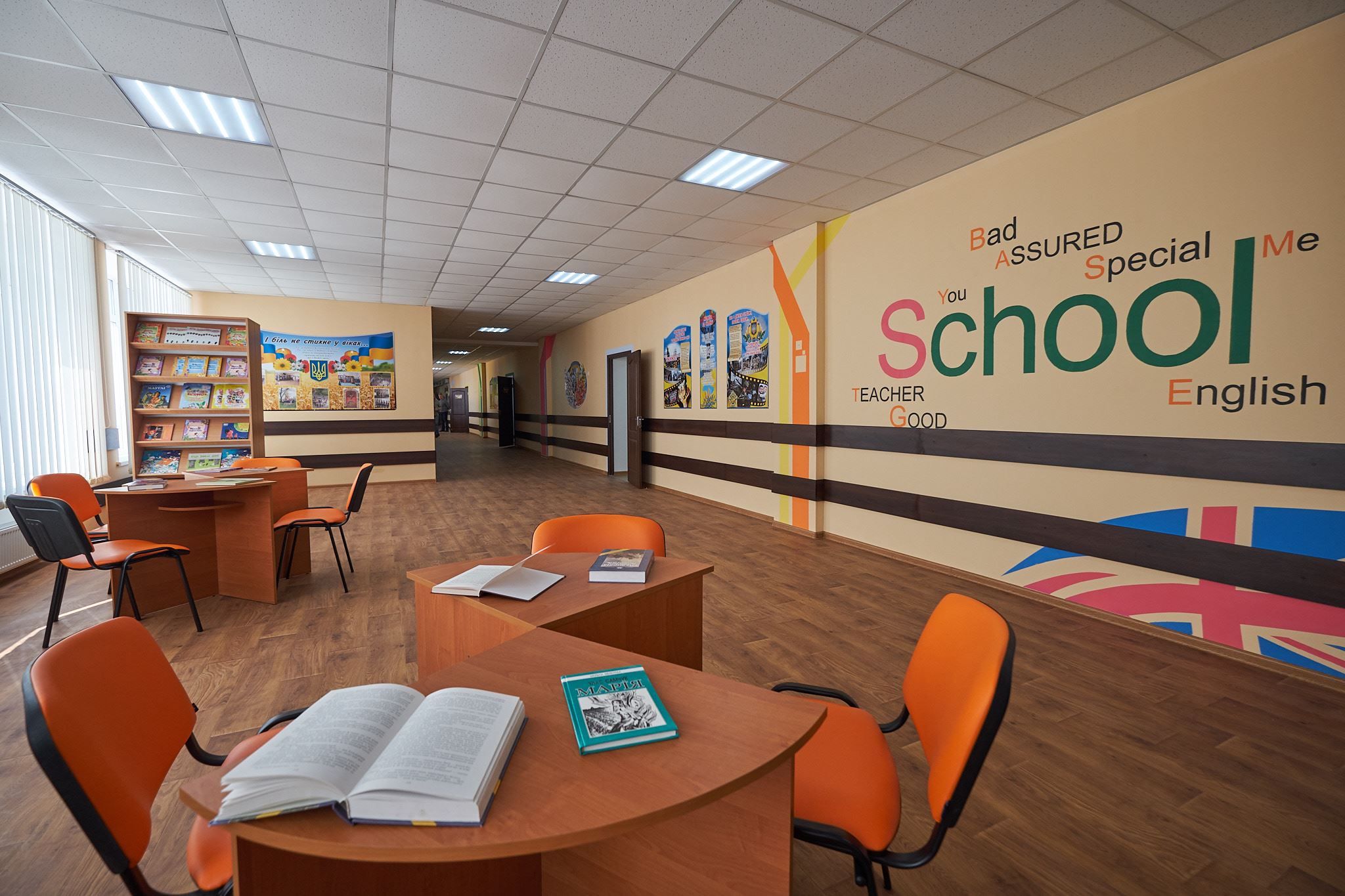У школі зробили не тільки сучасні кабінети з усім необхідним для здобуття знать обладнанням, але й зручну їдальню, роздягальню з душовими кабінками для спортивної частини школи.