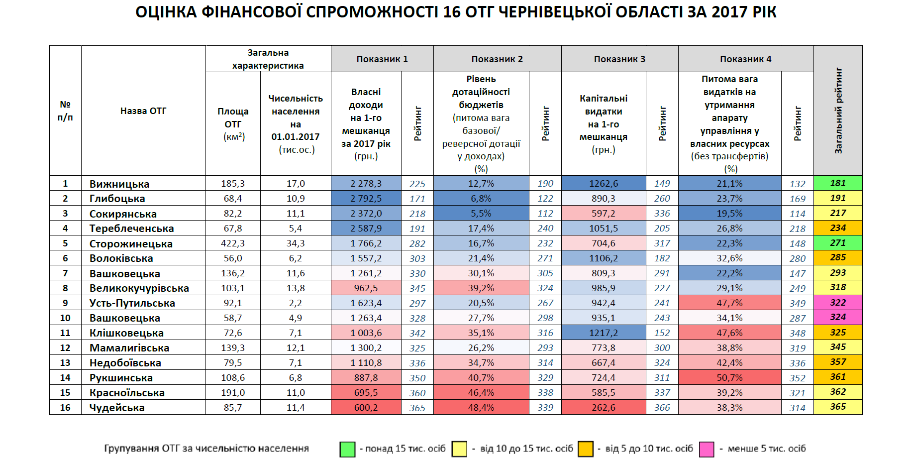 Деталі оцінки фінансової спроможності 16 ОТГ Чернівецької області ТУТ