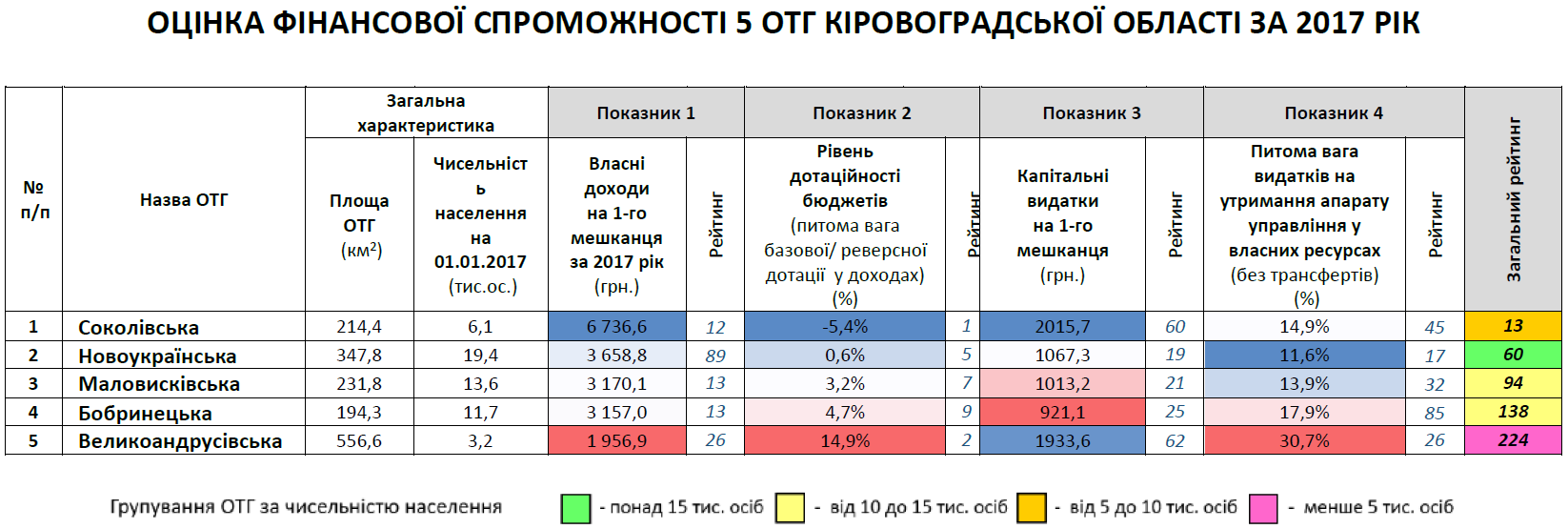 Деталі оцінки фінансової спроможності 5 ОТГ Кіровоградської області ТУТ
