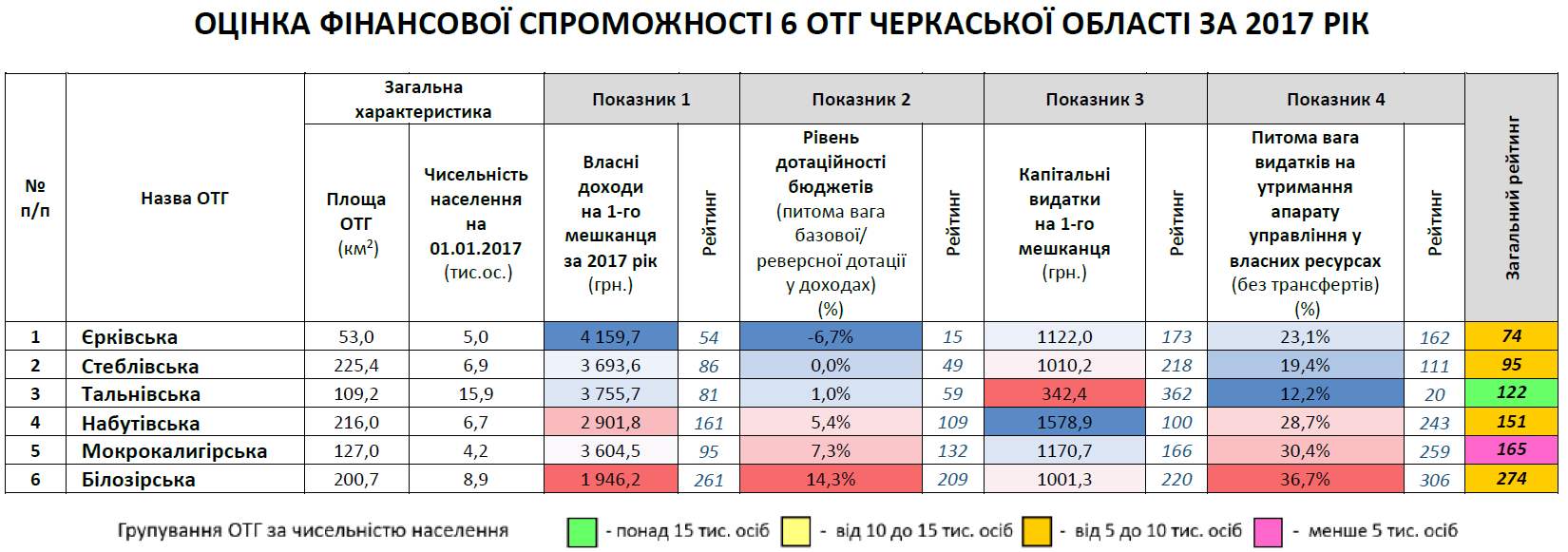 Деталі оцінки фінансової спроможності 6 ОТГ Черкаської області ТУТ