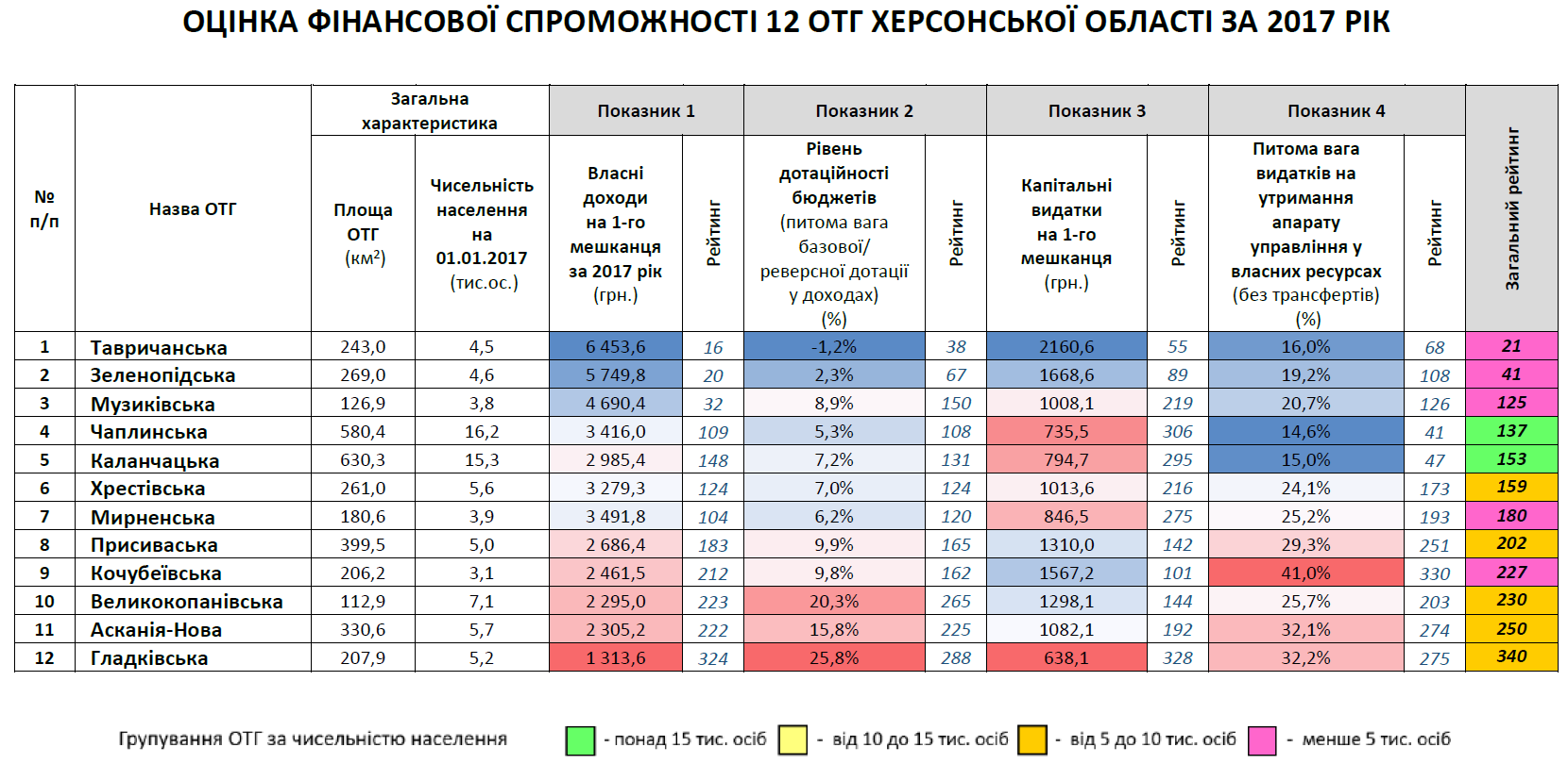 Деталі  оцінки фінансової спроможності 12 ОТГ Херсонської області ТУТ