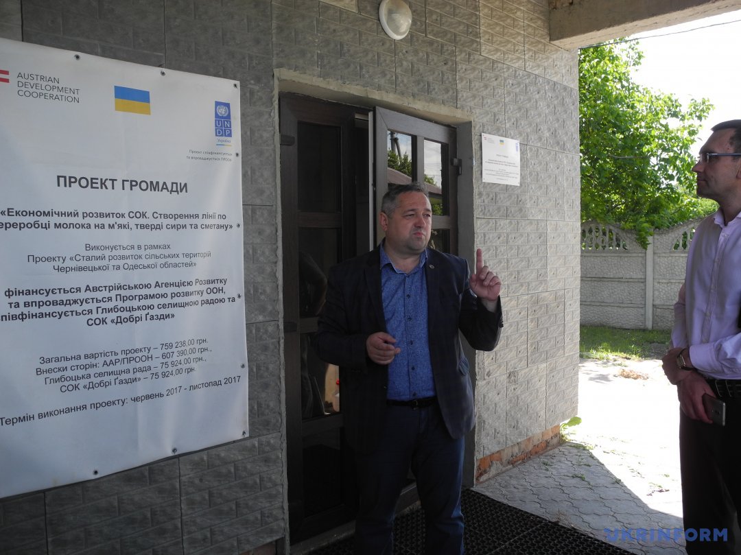 «Після створення ОТГ ми почали вивчати, що такого є в цьому селі, чим можна скористатись для розвитку, – розповідає голова Глибоцької ОТГ Григорій Ванзуряк. – Після проведеного аналізу зрозуміли, що в цьому населеному пункті залишилось дуже багато великої рогатої худоби. Місцеве населення збуває молоко і молочну продукцію на ринку або обласного центру, або на ринку районного центру. До Чернівців 14 кілометрів долають, до Глибоки – 7 кілометрів. Саме з цього люди і живуть. На зібранні громади запитали у людей, що можна зробити, щоб вам допомогти? «Зробіть так, щоб літом ми продавали усю продукцію», – була відповідь селян. Мовляв, літом молока багато, ціна падає, на ринку не все продаємо, стає невигідним тримати худобу, – каже голова ОТГ.