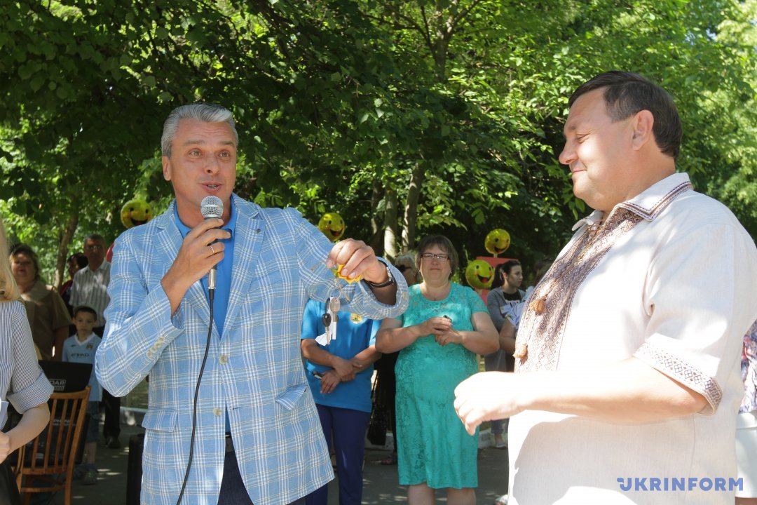 Гість свята - перший заступник голови Дніпропетровської обласної державної адміністрації Олег Кужман, вітаючи дітей та батьків, зробив громаді подарунок – вручив ключі від новенького, щойно з конвеєра, шкільного автобуса.