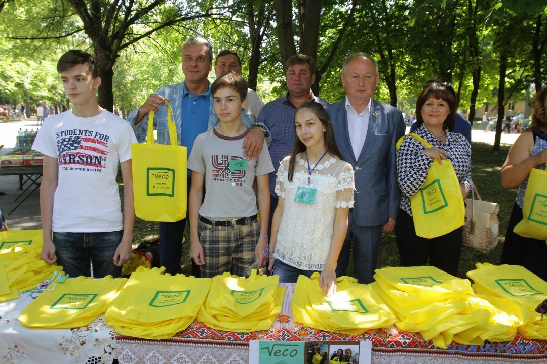 Молоді громадські активісти, презентуючи гостям та журналістам екологічні торбинки, що швидко розкладаються, одразу беруться агітувати за дбайливе ставлення до навколишнього середовища та відмову від поліетиленових пакетів, і до столика з торбинками вишиковується черга.