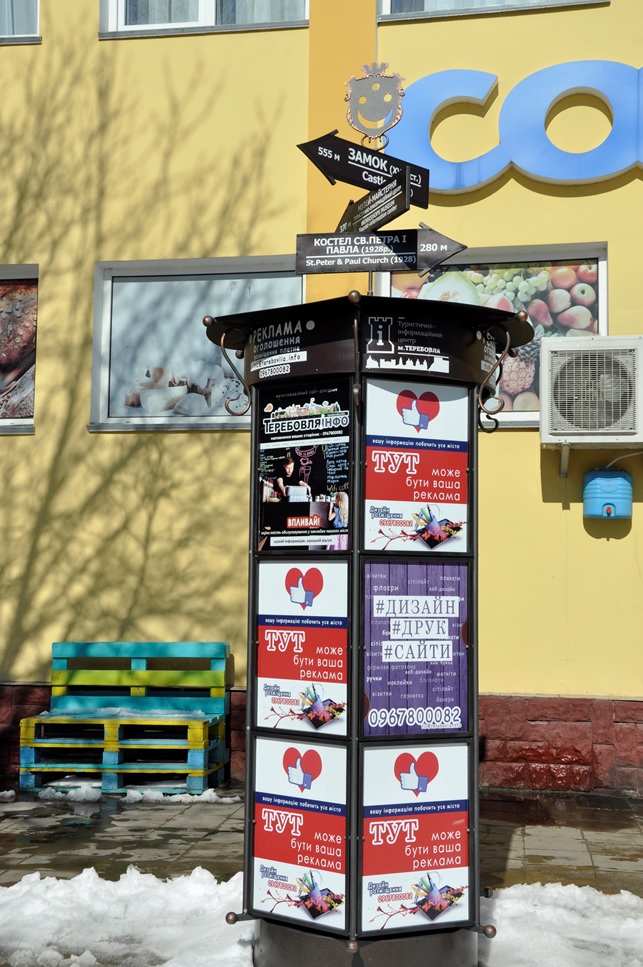 У березні 2018 року команда Туристично-інформаційного центру встановила у центрі міста рекламно-інформаційний тубус із першими туристичними знаками. Кована конструкція стала достойним способом розміщення рекламних оголошень та початком подальшої боротьби із незаконним  захаращенням міста рекламою.
