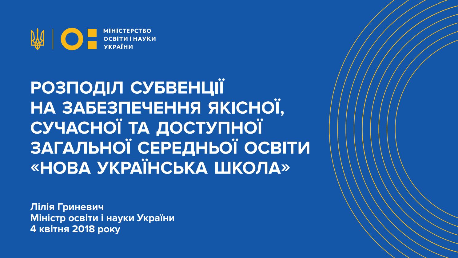 «1 вересня 2018 року всі першокласники прийдуть до Нової української школи. Найголовніше – ці діти навчатимуться за новим стандартом початкової школи і отримають якісно новий зміст освіти. Однак, щоб цей проект повноцінно реалізувати, окрім підготовки вчителів, потрібно також створити необхідне навчальне освітнє середовище. І тому ця постанова – це безпрецедентний крок, вперше за всю історію України у початкову школу вкладається така сума грошей. А початкова школа – це та основа, на якій пізніше вибудовується весь подальший розвиток дитини, її сприйняття та ставлення до навчання», – розповіла Міністр освіти і науки України Лілія Гриневич.