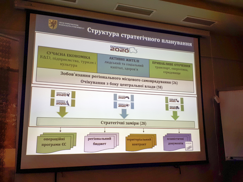Він поділився враженнями від поїздки та прокоментував ключові висновки стосовно напрямку «Стратегічне планування у Поморському воєводстві РП». На думку Юрія Войціцького, успіх та розвиток територій залежить від вирішення базового завдання – забезпечення сталого економічного розвитку. Він розповів про особливості побудови стратегій у сусідній Польщі на прикладі окремого воєводства, зазначивши, що, в цілому, принципи є єдиними по всій країні: