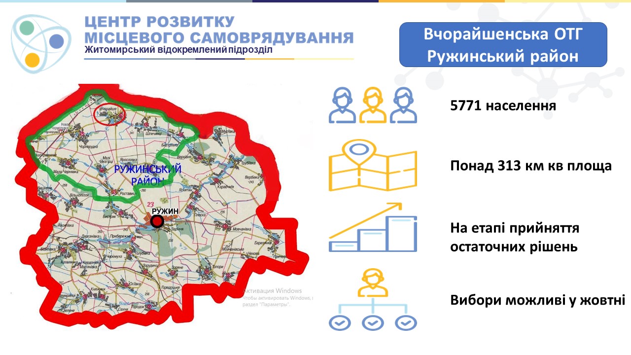 В лютому 2018 року експерти Житомирського ЦРМС, створеного Програмою «U-LEAD з Європою» та Мінрегіоном, активізували роботу із надання методичної та консультаційної підтримки процесу об’єднання, який передбачав проведення інформаційно-роз’яснювальної роботи в громадах та участь у громадських слуханнях та сесіях місцевих рад. Таким чином, станом на 31 липня, маємо таку ситуацію по формуванню нових ОТГ: