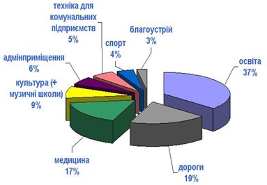 Так, частка витрат на освітні об’єкти (школи та ДНЗ) майже в півтора раза більше, ніж в середньому по Україні, медицина опинилася на третьому місці (по Україні вона займала тоді восьме), а техніка для комунальних підприємств, навпаки, опинилася серед малопопулярних заходів.