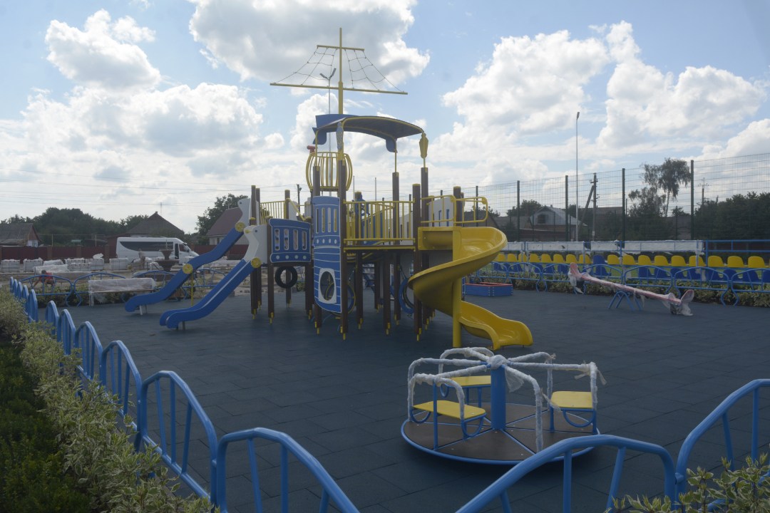 Поряд – спортивно-ігрове містечко для дітей і сквер з розкішним гранітним фонтаном. Їх відкриватимуть у День Незалежності.