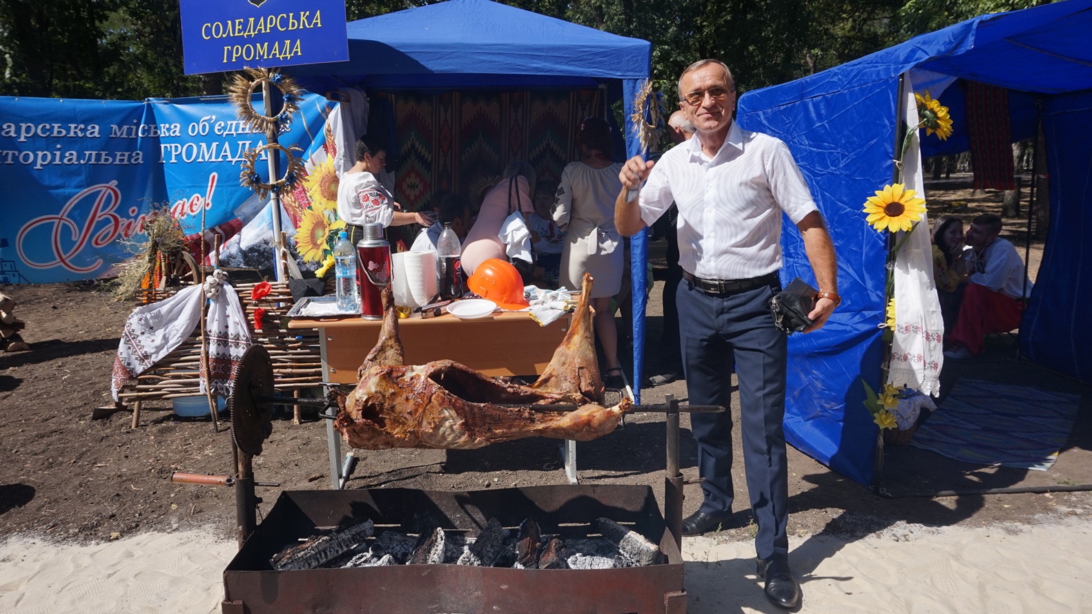 Олександр Степаненко, голова Соледарської ОТГ, розповів, що приготувати барана їм запропонував місцевий підприємець, переможець обласного конкурсу «Український донецький куркуль».