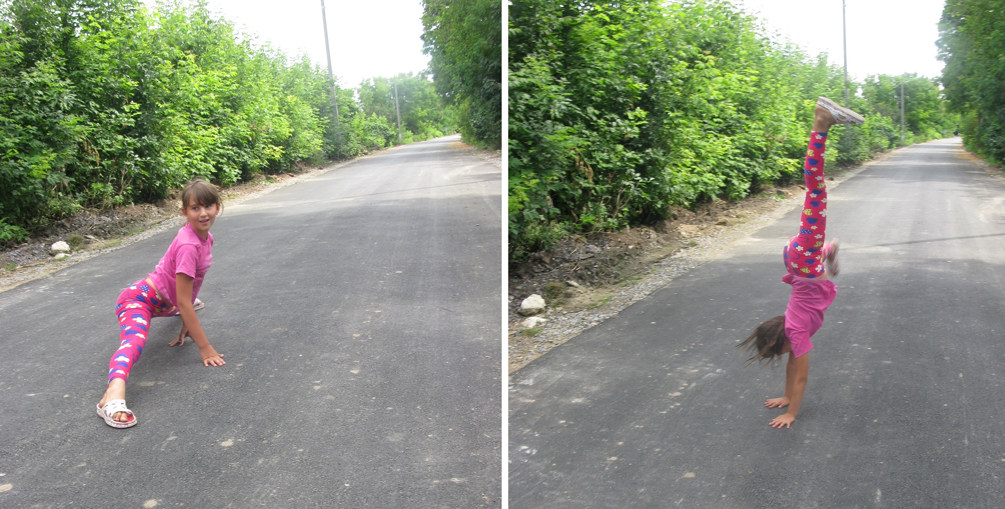 Раптом вдалині ми бачимо дівчинку у рожевій кофтині і таких самих рожевих лосинах. Вона… йде по дорозі колесом. Просто і легко відштовхуючись від новенького асфальту, вона літає над дорогою, наче метелик. Дівчинка сором’язливо опускає голову, коли ми підходимо, проте згодом охоче повторює для нас свої акробатичні вправи. Ми дізнаємося, що вона –  п’ятикласниця нетребівської школи на ім’я Богдана Мілінчук. А колесо її навчили робити на танцювальному гуртку у Томашполі, куди її та інших дітей села безкоштовно возить двічі на тиждень новенький мікроавтобус, який з’явився у селі після об’єднання.