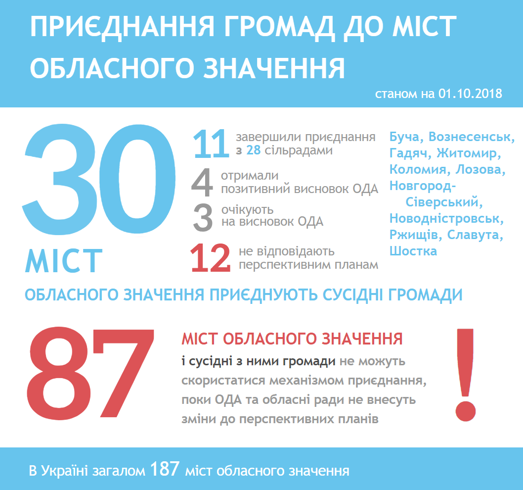 Ще 19 міст на стадії завершення формальних процедур, які дадуть змогу приєднати довколишні громади.