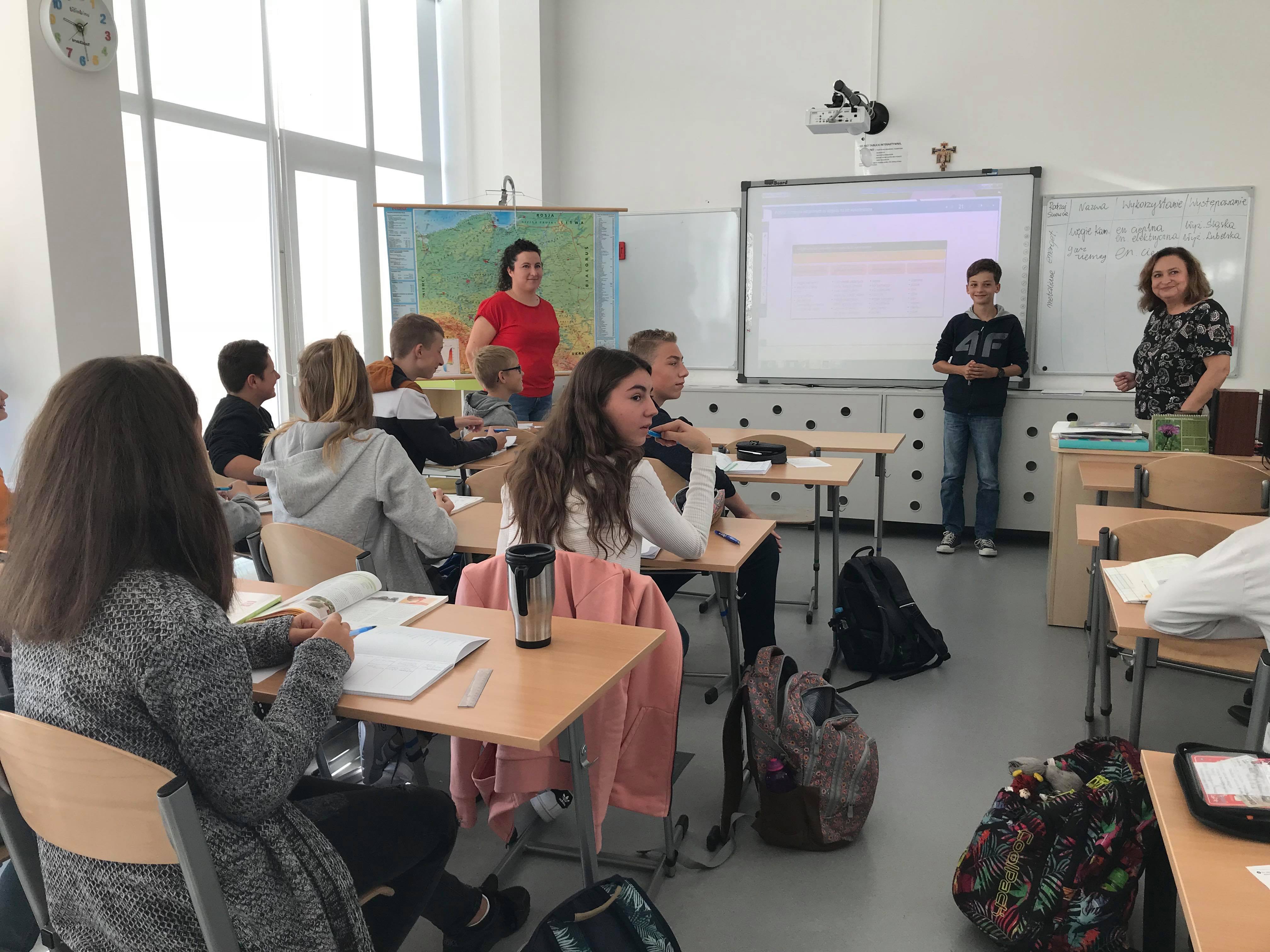 Школа відкрита з сьомої ранку, щоб батьки мали змогу залишити дитину перед роботою, школярі вчаться в дві зміни, заняття закінчуються о 14.30, проте працює група продовженого дня. Успішно працює бібліотека, де є і електронні книжки, на кожному кроці – бокси для сортування сміття. Згідно із законом, в класі має бути 24 учні, якщо дітей 25 – створюються дві паралелі. Є всі умови, щоб батькам і дітям було зручно. Щотижня учні відвідують басейн, до якого ґміна здійснює підвіз на шкільному автобусі.