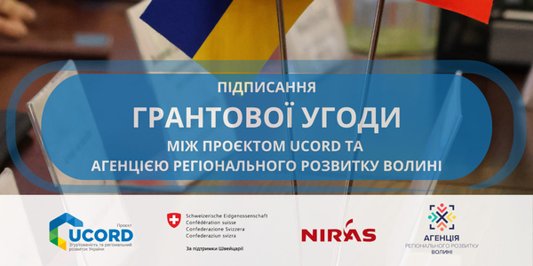 Агенція регіонального розвитку Волині підписала грантову угоду з проєктом UCORD