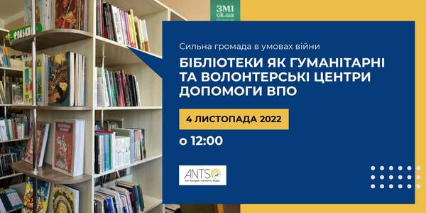 4 листопада - тренінг "Бібліотеки як гуманітарні та волонтерські центри допомоги ВПО"
