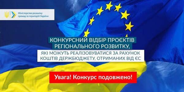 Мінрегіон на 2 тижні продовжив конкурсний відбір проектів регіонального розвитку, що фінансуватимуться за кошти ЄС