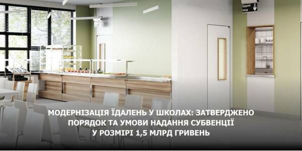 Модернізація їдалень у школах: затверджено порядок та умови надання субвенції у розмірі 1,5 млрд гривень
